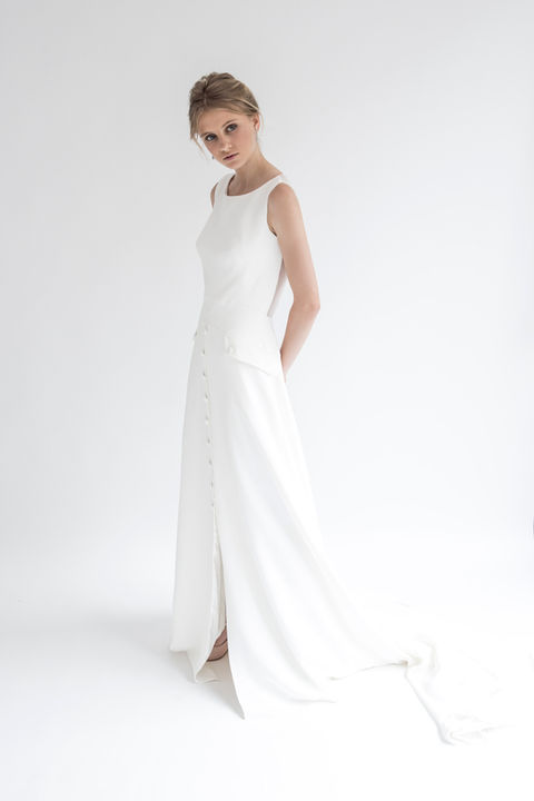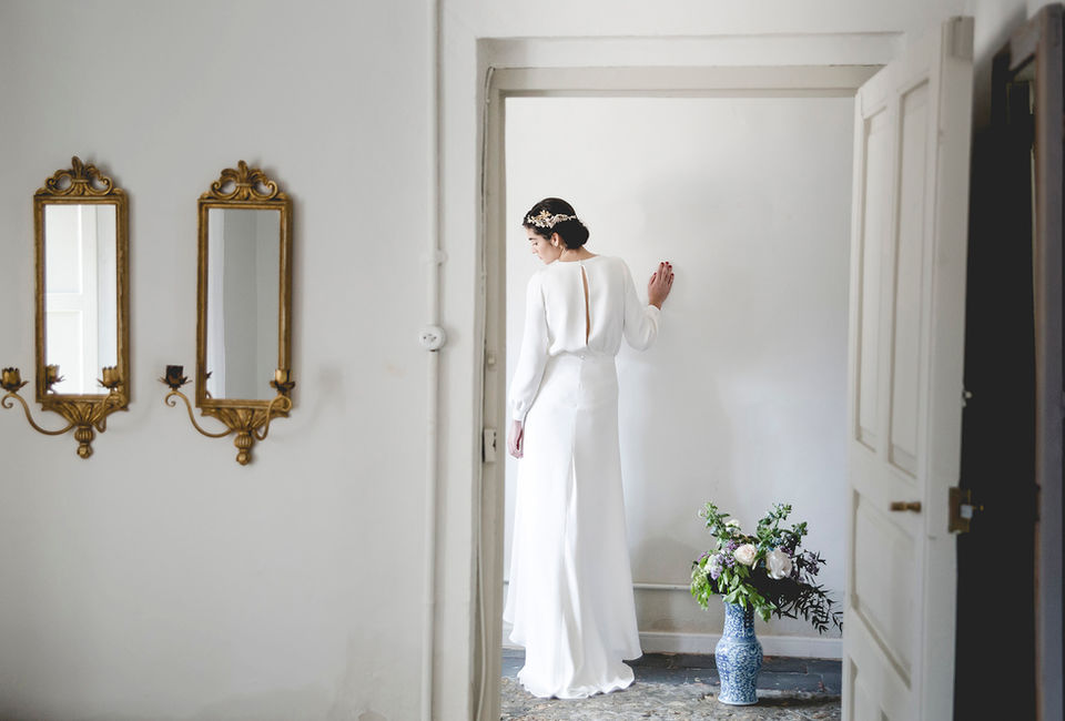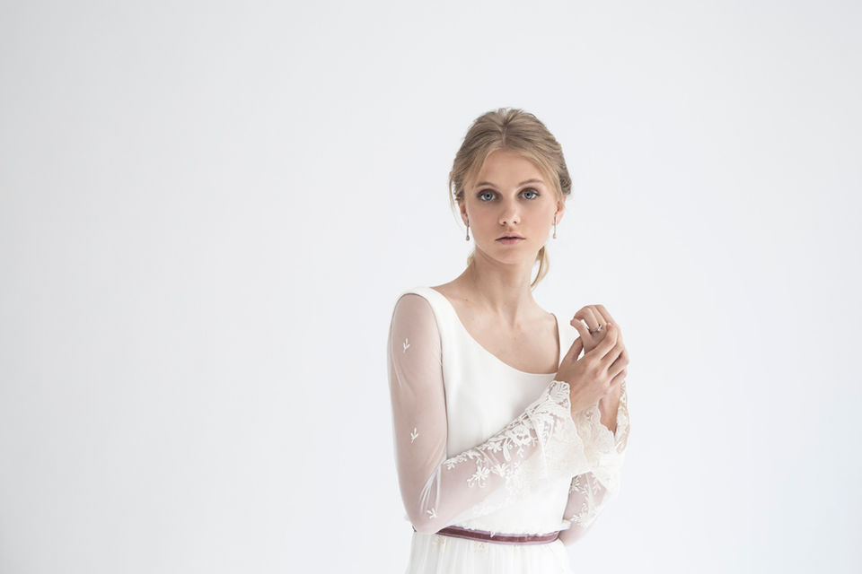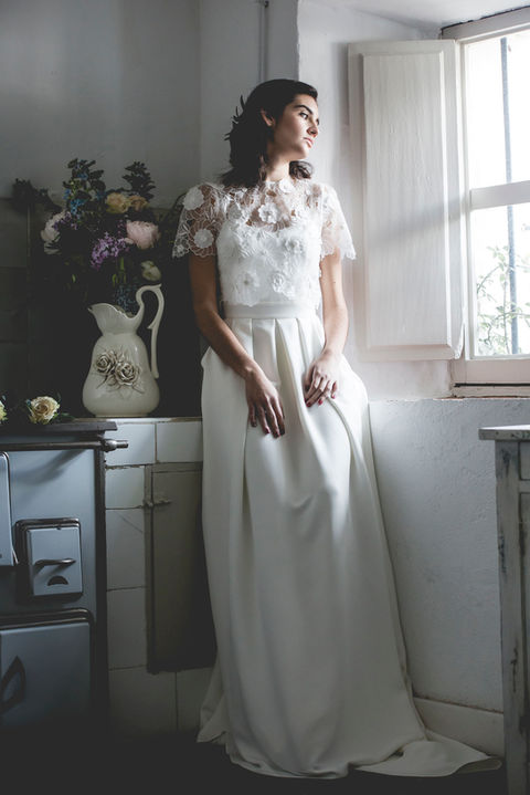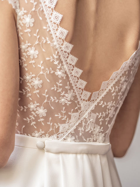 Low cut or subtle veiled backs, frills turning into sleeves, buttons that get specially relevant and slight transparencies, make unique each of the nine designs that make part of Mélancolie.